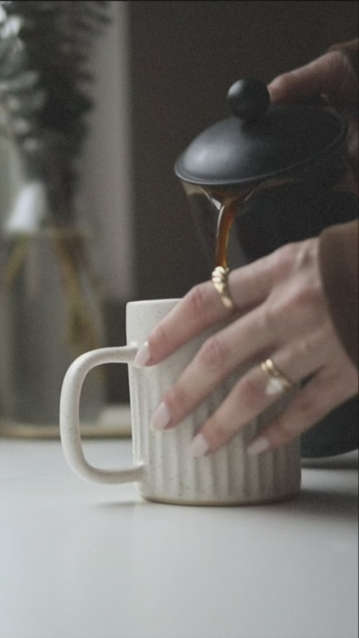 We use these cups every morning at Apt 34. No frills, just a strong handle and stoneware that feels at home in your hands.